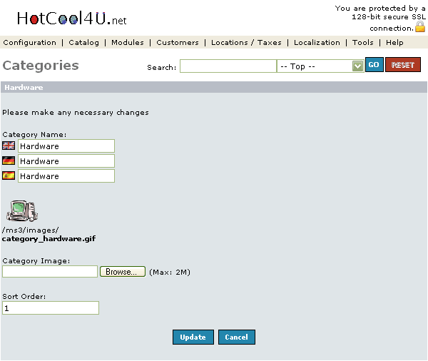 分類目錄圖像可以經由particular Category上載, 圖像大小已於Configuration>Images