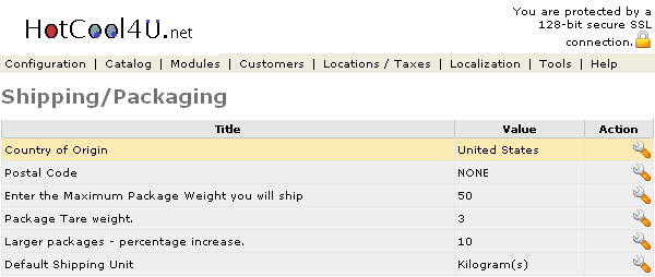 Shipping/Packaging allows the store owner to setup values for weight that are used by the shipping modules.