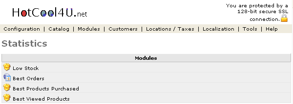 The Statistics section of the administrative tool allows the store owner to view information relating to what customers are doing on the site.