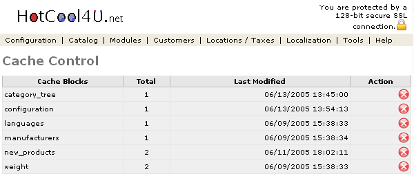 Figure 1. Cachelisting page under the Admin>Tools>Cache section.