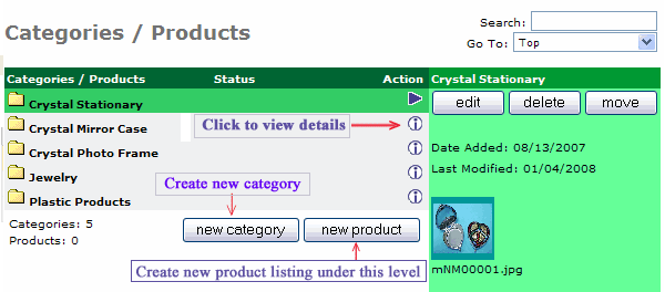 分類目錄的位置是在您的產品文件夾之下, 和列出主要" Top" 之下部分