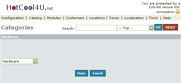 To move a Category click the dropdown box and move the folder to another area of the store.