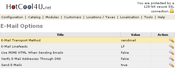 Figure 1 shows the E-Mail Options listing page under the Admin>Configuration>E-Mail Options section.
