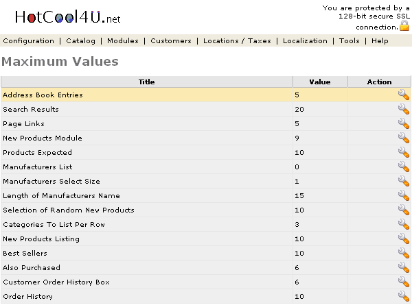The Maximum Values are the module listings in the store.